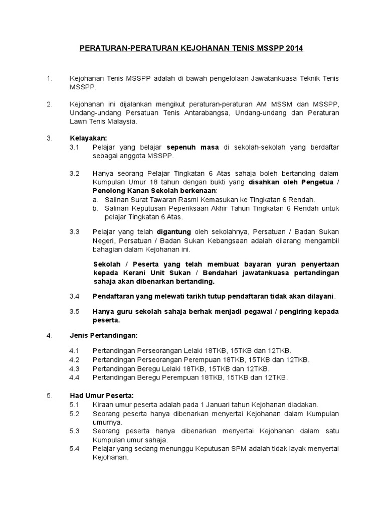 Peraturan Tenis Msspp 2014 Terkini