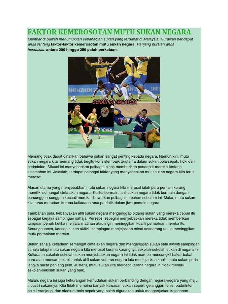 Faktor Kemerosotan Mutu Sukan Negara