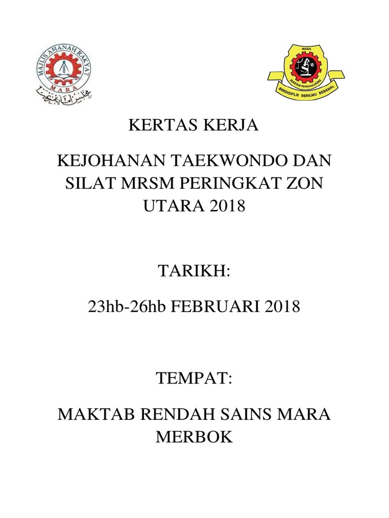 Kertas Kerja Kejohanan Taekwondo Mrsm Se Malaysia Kali Ke Pdf Free Download