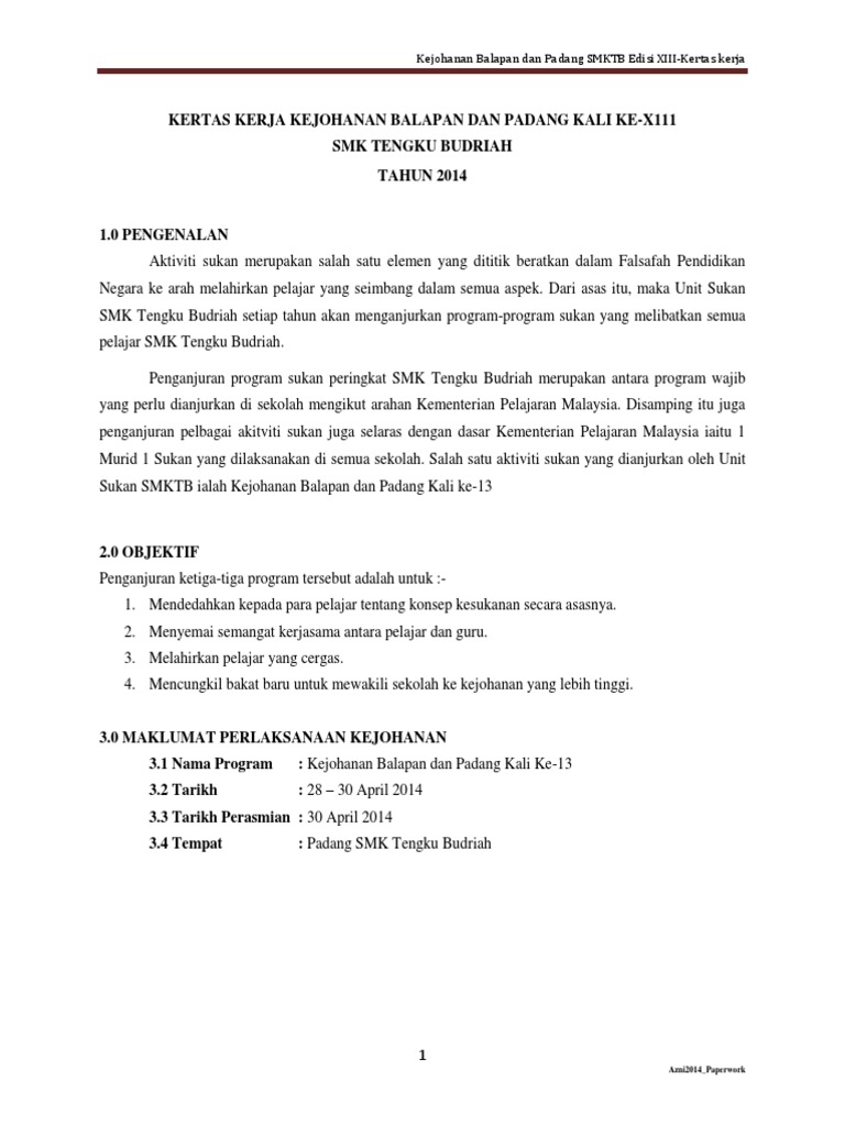 Kertas Kerja Kejohanan Balapan Dan Padang Kali Ke Pdf