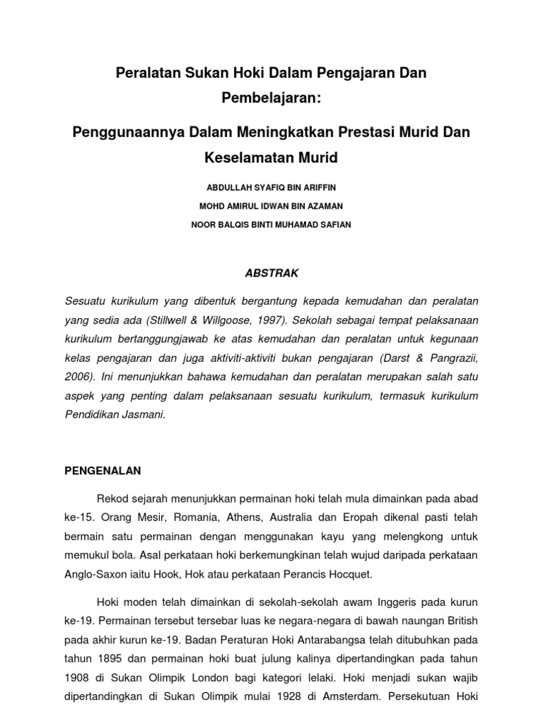 Menimbilkan minat murid dalam permainan hoki. 25 Full PDFs related to this paper. Kejohanan Hoki 5 Sepasukan Tertutup KUKUM 2006.
